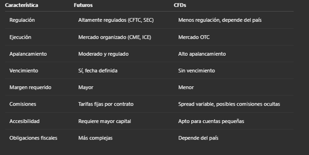 Resumen del artículo Este artículo analiza dos de los instrumentos financieros más populares entre traders: los contratos de futuros y los contratos por diferencia (CFDs). Explicamos su funcionamiento, diferencias clave, por qué los CFDs están prohibidos en Estados Unidos y qué plataformas son comúnmente utilizadas para operar cada uno. Ideal para traders principiantes y experimentados que buscan claridad y educación financiera sólida.
